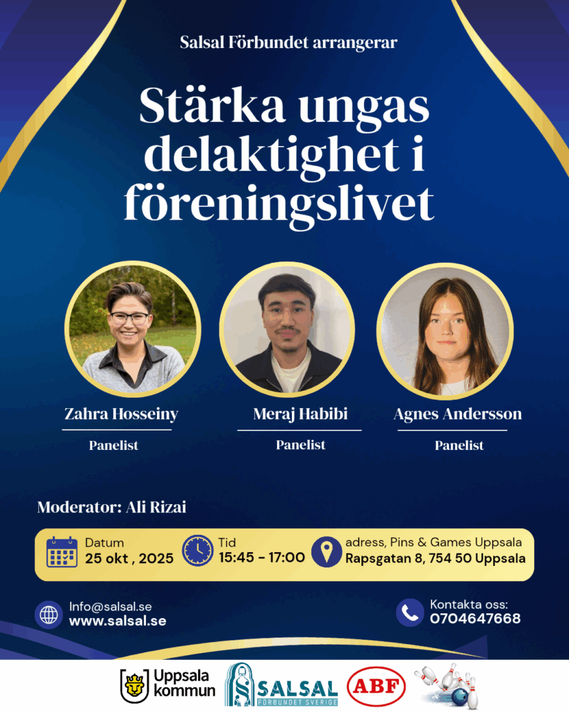 Vi på salsal Förbundet har planerat att arrangera en paneldiskussion med temat “Stärka ungas delaktighet i föreningslivet.”
