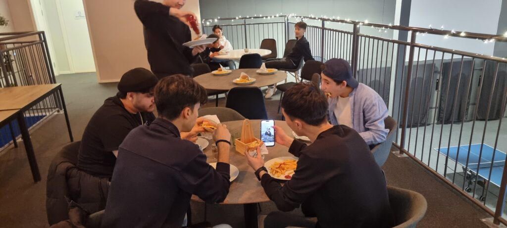 Efter workshopens slut fortsatte kvällen med roliga aktiviteter där vi spelade biljard, pingis och bowling, och avslutade med att äta hamburgare och pommes tillsammans.